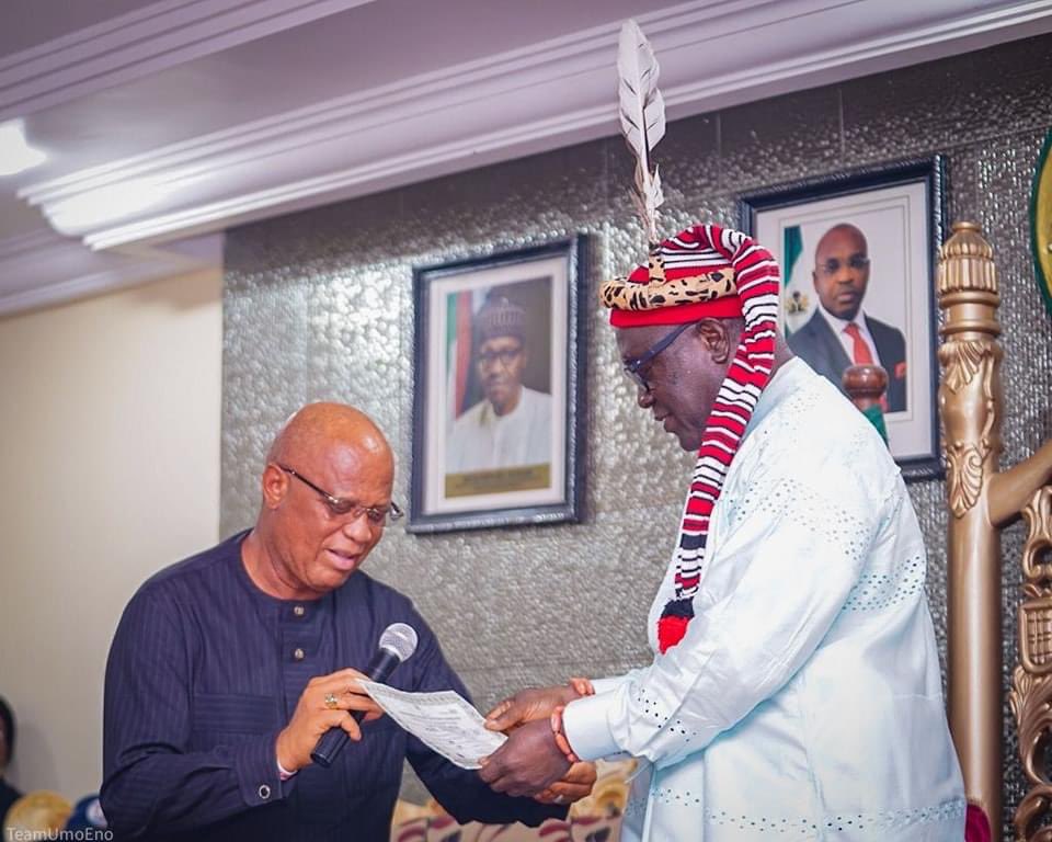 “Governor Eno should know that he owes Oku Ibom Ibibio and President General of the Akwa Ibom State Supreme Council of Traditional Rulers, His Eminence, Ntenyin (Dr.) Solomon Etuk a huge debt of honour and gratitude!”
