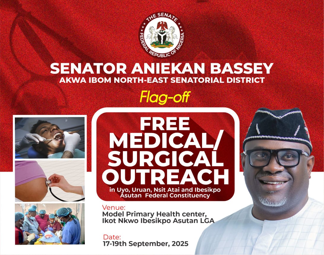 The Senator representing Akwa Ibom North-East Senatorial District, Senator Aniekan Bassey, has concluded arrangements to commence a free medical and surgical outreach across the nine local government areas of the Senatorial District.