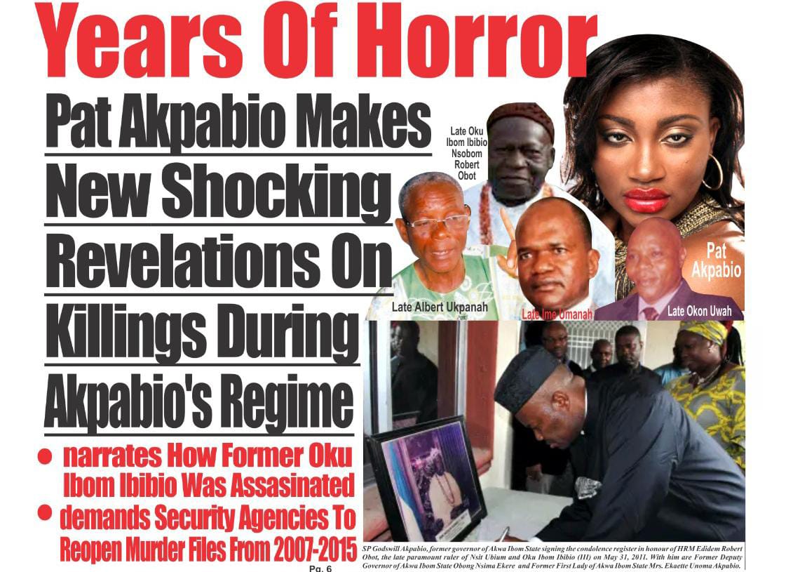 The altercation between Senator Godswill Akpabio and his sister in-law Mrs Patience Akpabio took a new dimension during the week with Patience Akpabio indicting the Senate President of leading the most bloody government in Akwa Ibom State during his tenure as the governor of the state between 2007 and 2015.